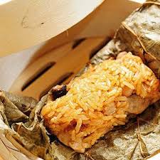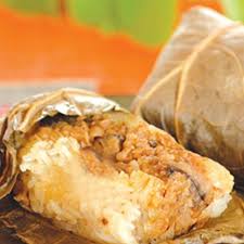 (Hong Kong Style Lotus Leaf Glutinous Rice Filled with Season Chicken and Sesame Oil Flavored Glutinous Rice and Topped with Salted Egg)