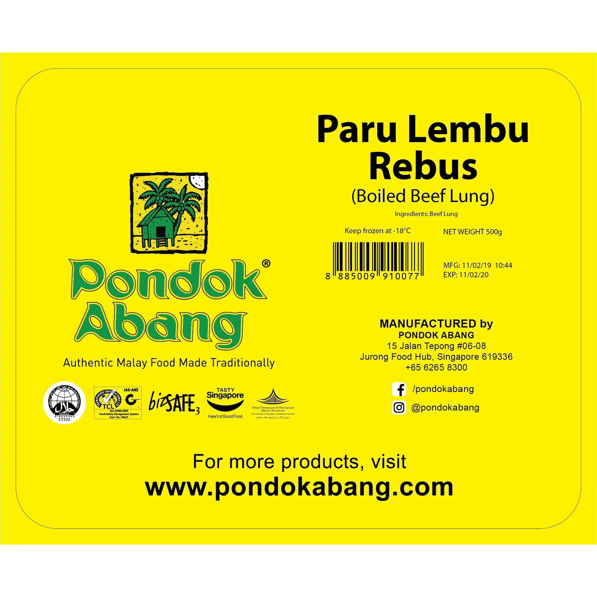 Pondok Abang - Boiled Beef Lung (Paru Rebus) / 500g